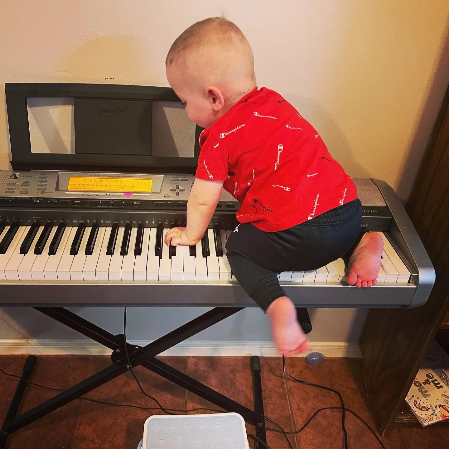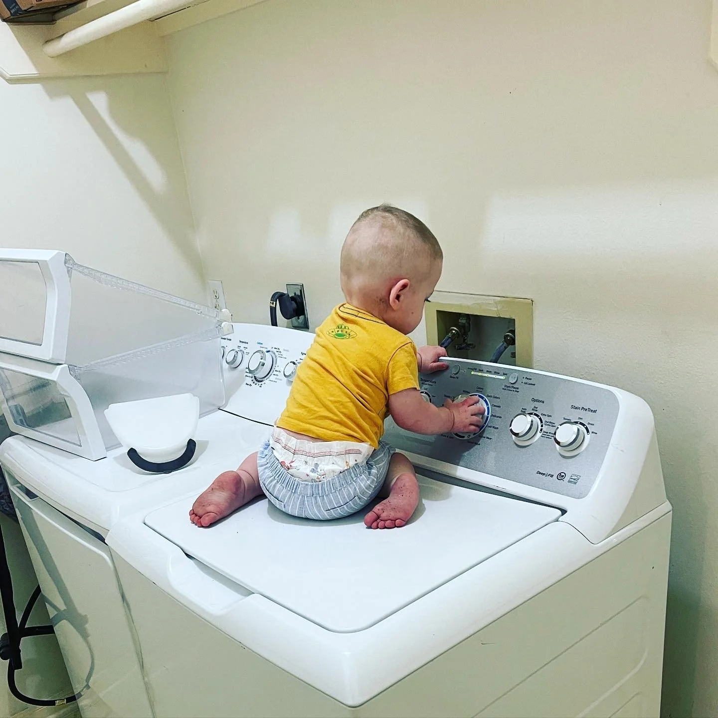 He’s back to climbing on everything. (As if he ever stopped) Banging on the piano is his all time favorite. And he discovered the washing machine this week.